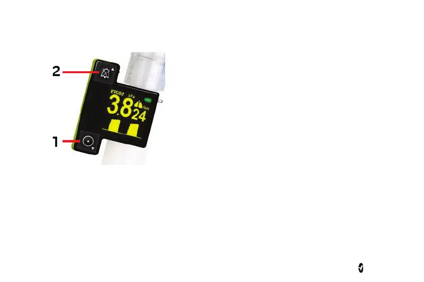The EMMA Capnograph has one Power On and one Alarm Silence button. These buttons are also be used for adjusting