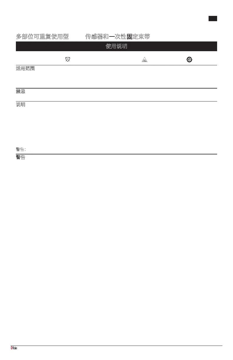 • 如果传感器缠绕得过紧或者由于浮肿而变得太紧,可能会导致读数不准确,并且可能导致压迫性组织坏死。