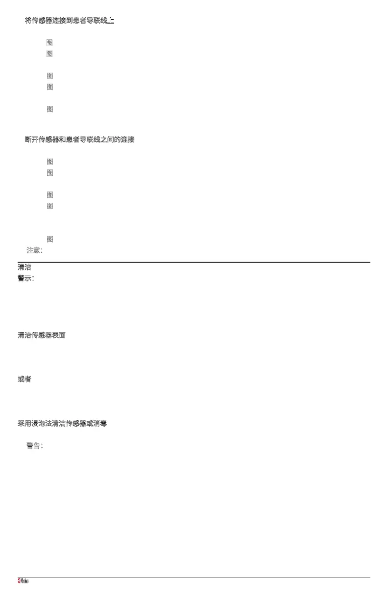 注意:更换传感器位置时,先要断开传感器与患者导联线的连接;然后在将传感器放置在新位置后,重新进行连接。