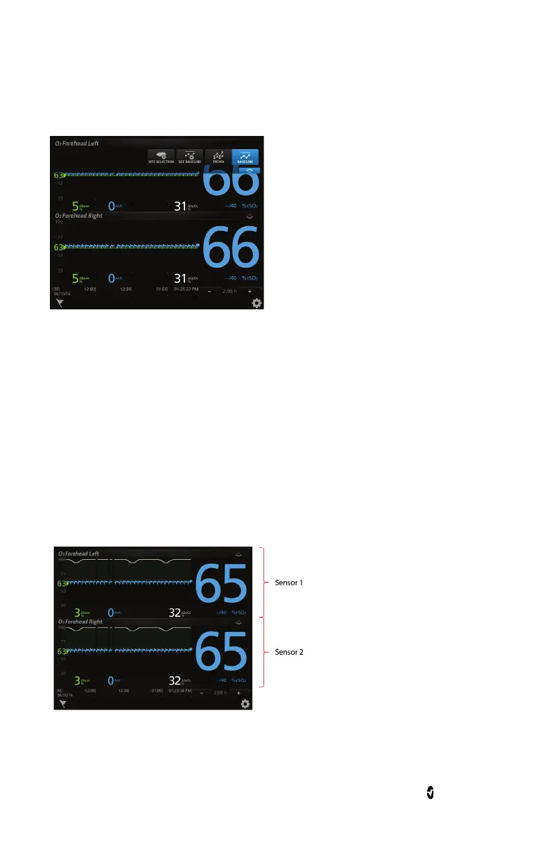Trend View is the default viewing option for an O3 window. The trend view displays rSO