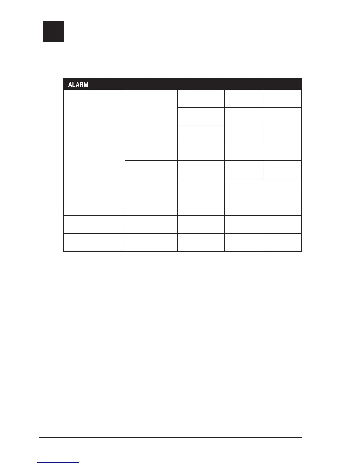 NOTE: If there is a loss of power for any length of time, the Alarm settings will be set back