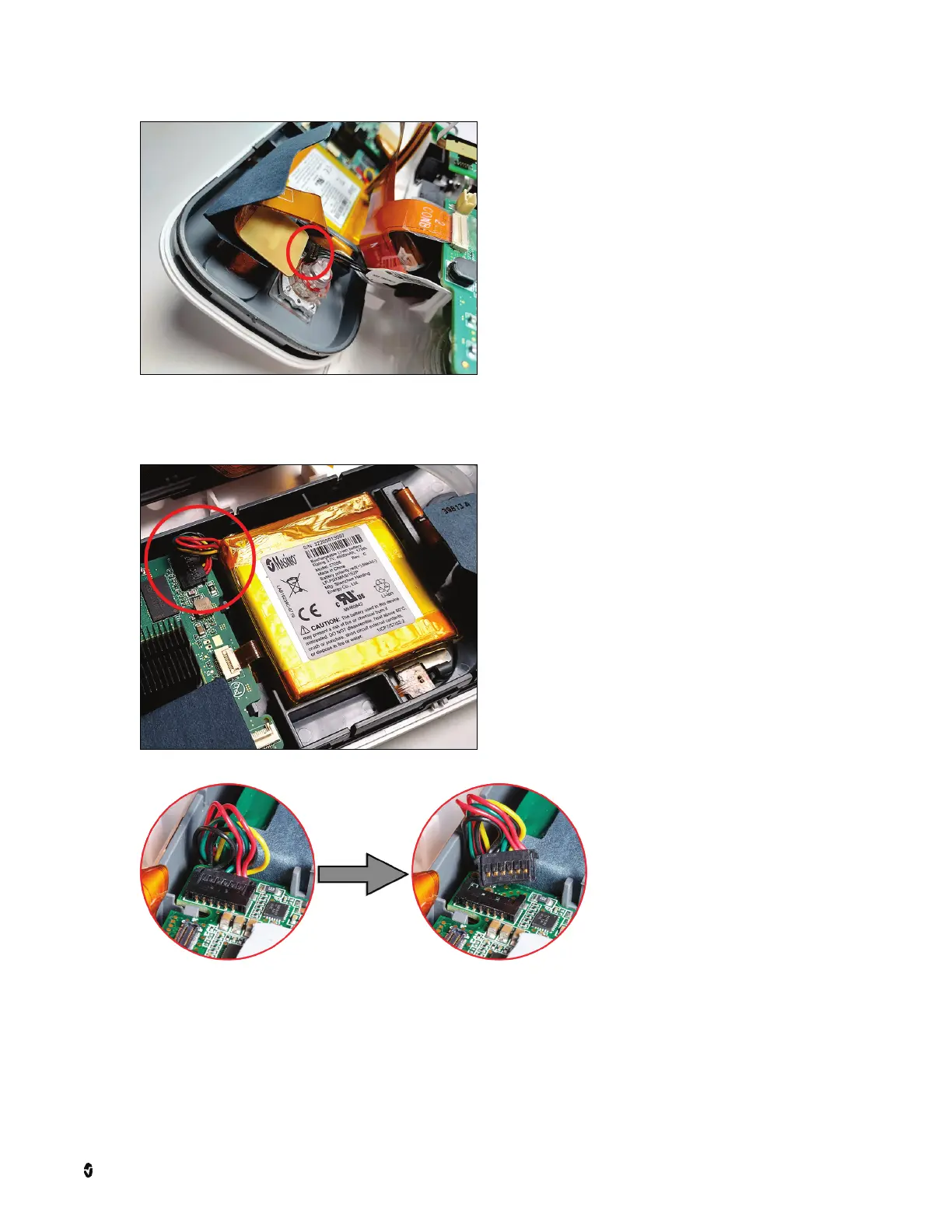 8. Disconnect the battery connector from the circuit board by pulling towards the battery.