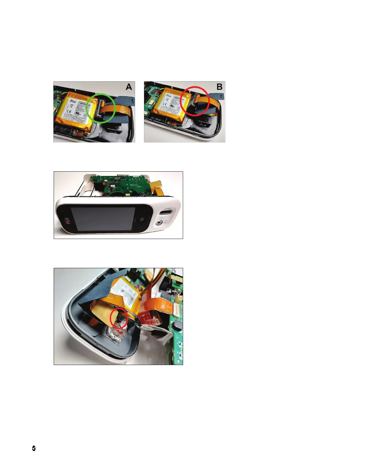 • In image B, the component is improperly aligned and protruding outside of the designated area.