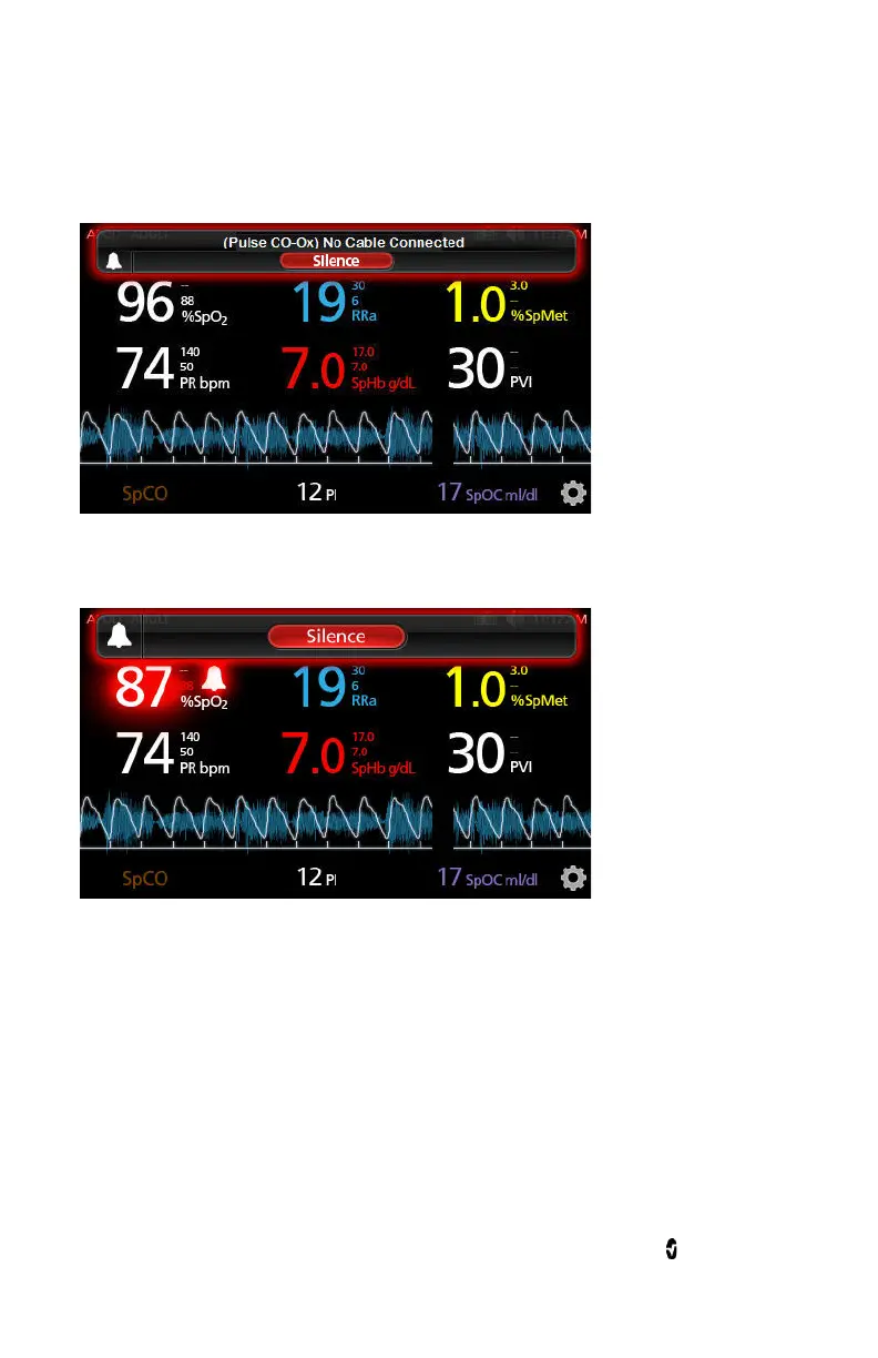 Audible alarms can be temporarily suspended by pressing the