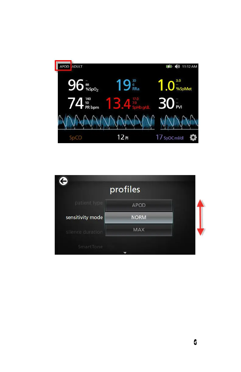 screen, select the desired mode by scrolling up or