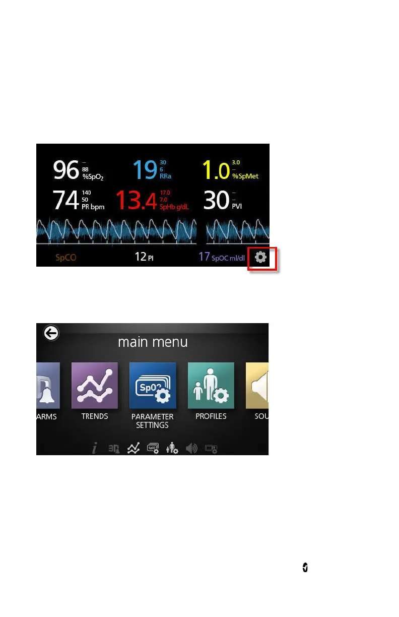 Masimo Radical-7 - Accessing the Main Menu; Navigating the Main Menu