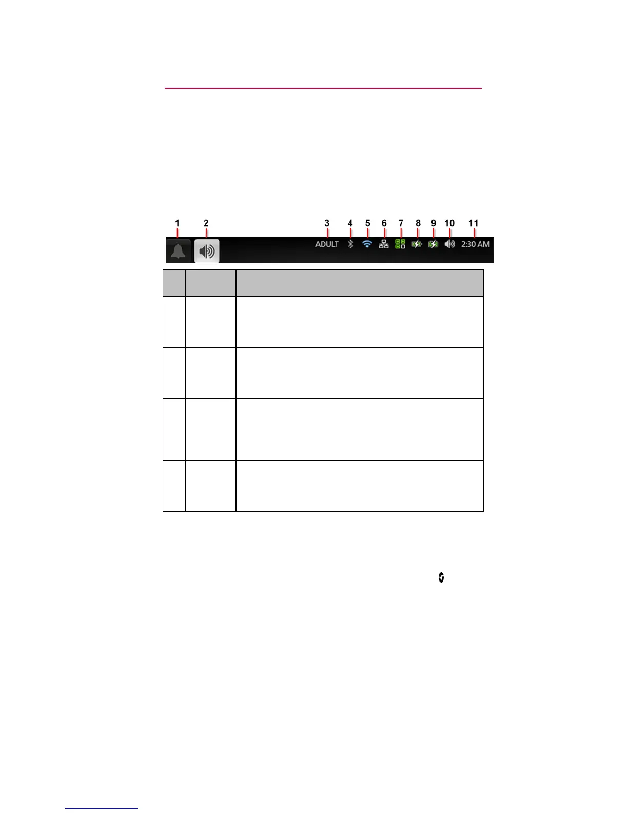 At the top of the Main Screen is the Status Bar with interactive icons. Each icon