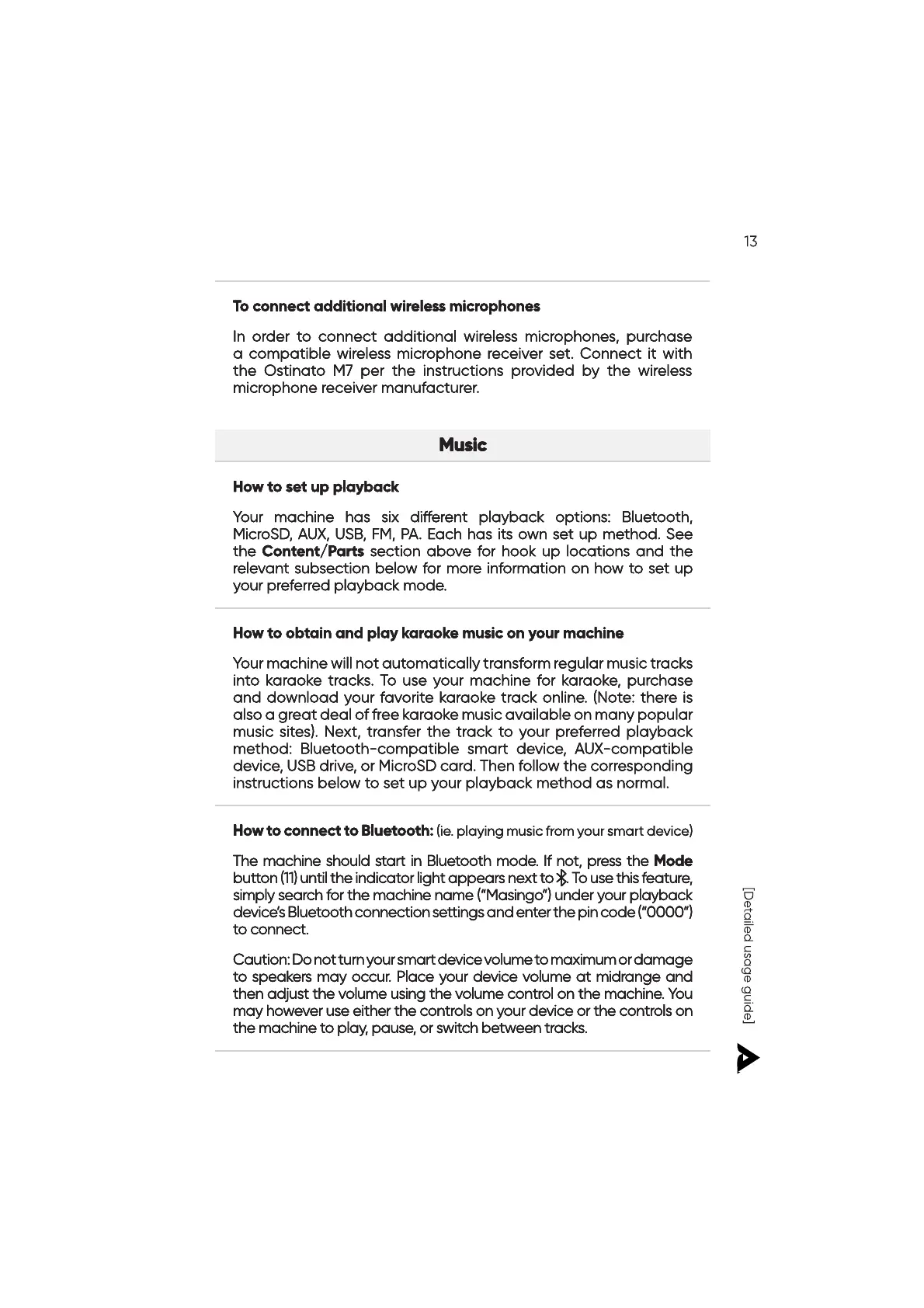 MicroSD, AUX, USB, FM, PA. Each has its own set up method. See