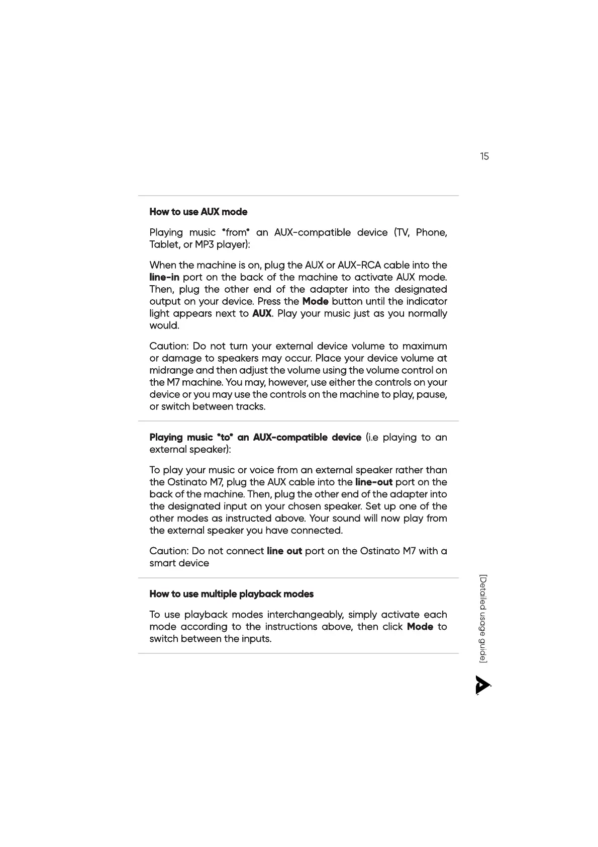 the Ostinato M7, plug the AUX cable into the line-out port on the