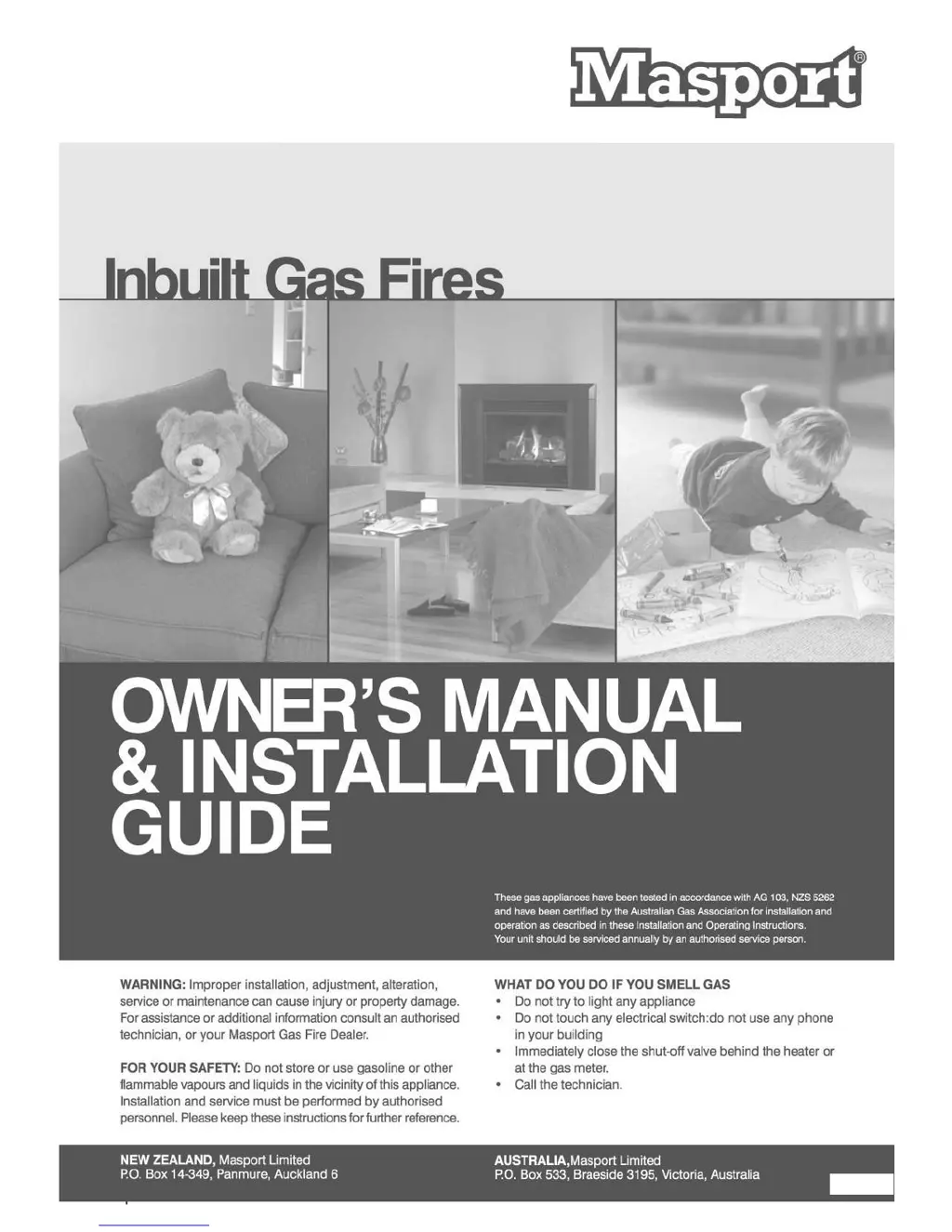 If you smell gas in the room when using your Masport Indoor Fireplace, pipe fittings may be leaking. Check all joints for leaks, including the gas supply system, the pilot light supply tube, the main burner supply tube, and all connections to the control valve and pressure reducing valve (Piccolo models). Use ONLY a proper leak check solution. NEVER USE AN OPEN FLAME TO CHECK FOR LEAKS.