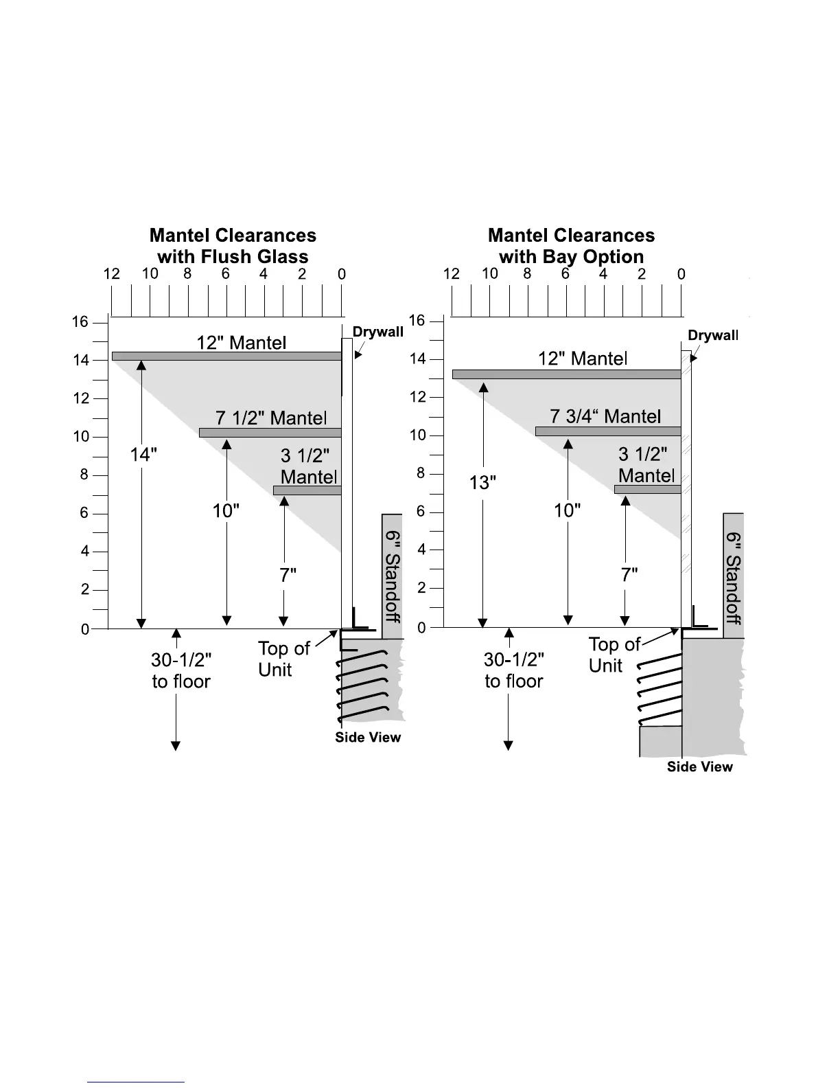 Because of the extreme heat this fireplace emits, the mantel clearances are critical.