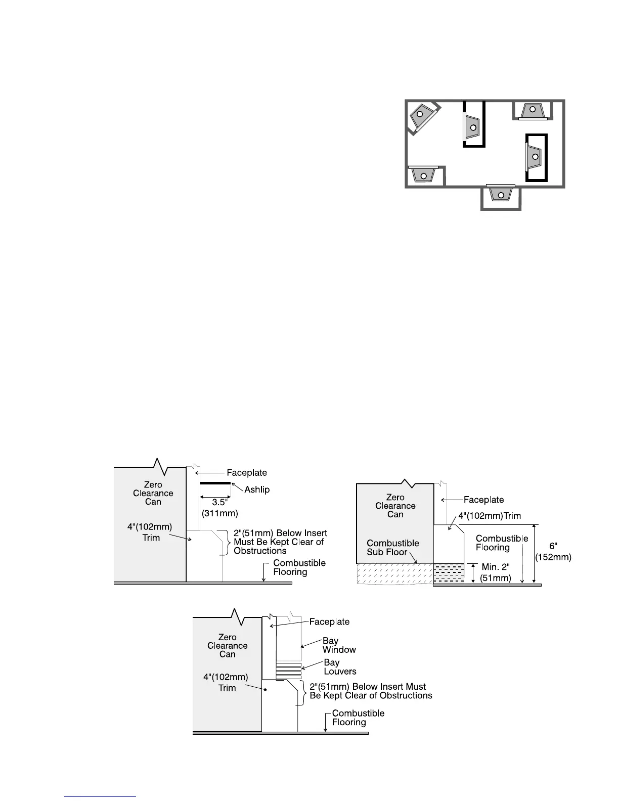 (including the 4"(102mm) hearth trim) to a combustible floor (see Figure 1). For detailed installation see