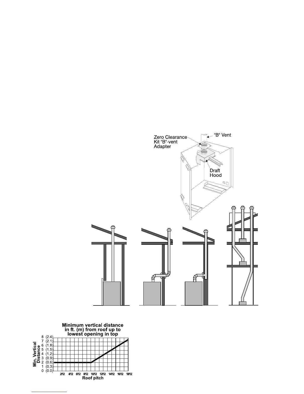 should be installed. Use “B” Vent (flue) to bridge