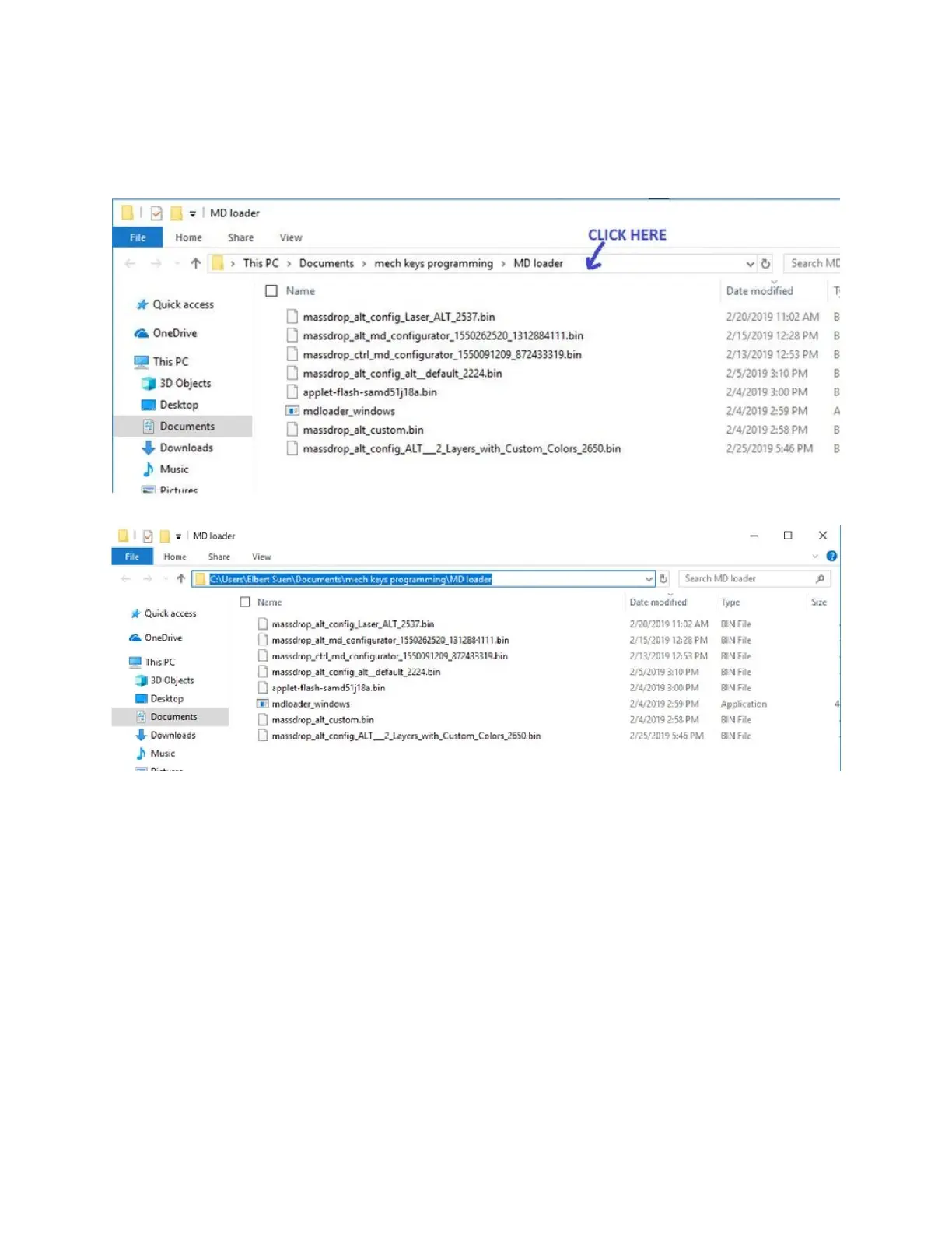 5) a) Determine the file path to the directory that contains the BIN file you just