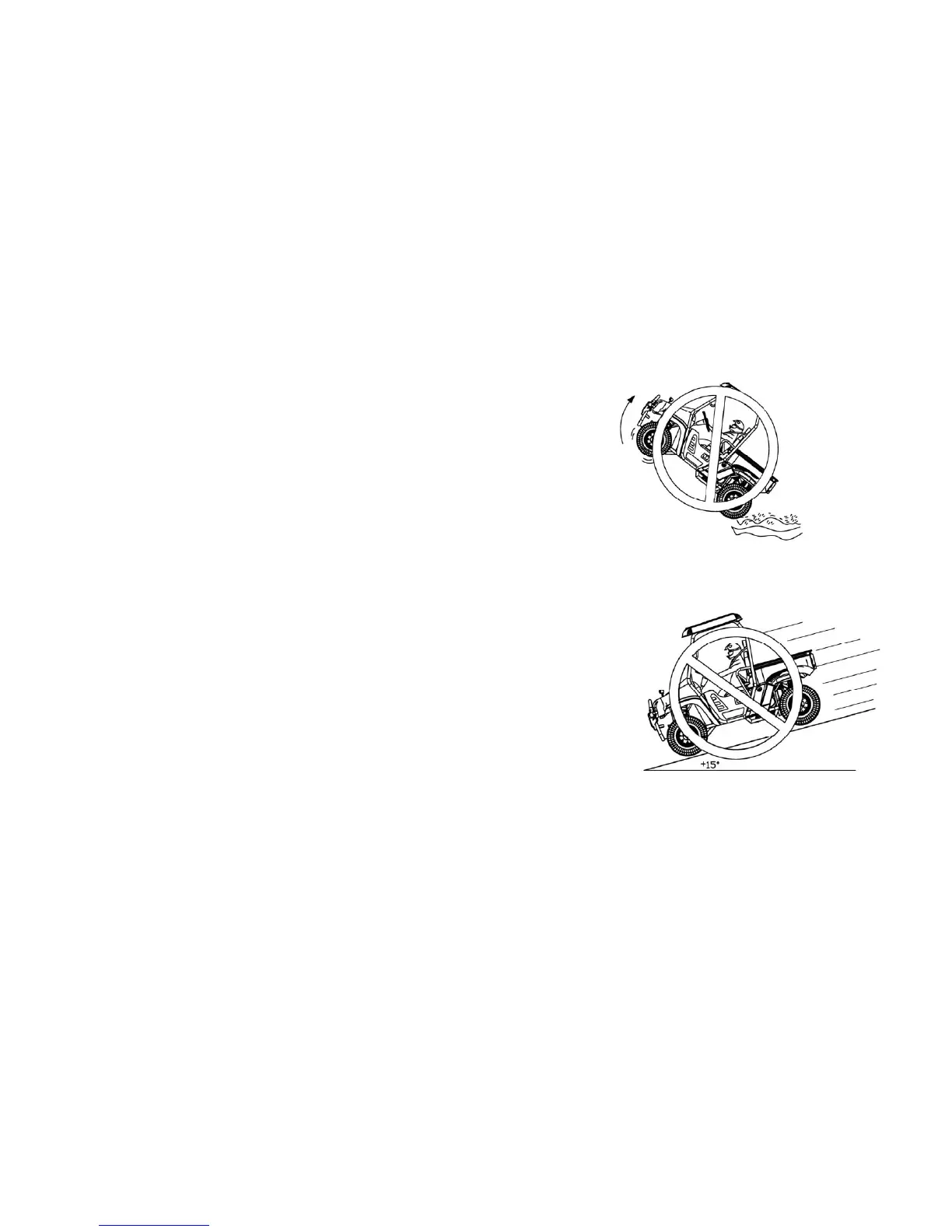 ● Avoid traveling down a hill at an angle, which would cause the vehicle to lean sharply to one side.