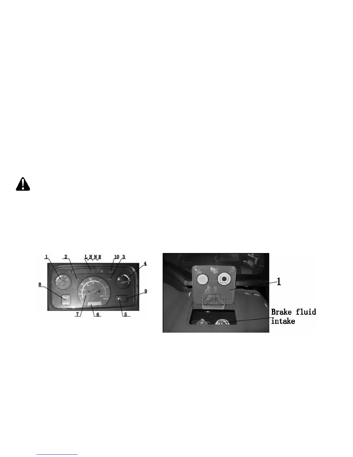 brake fluid level 9 on the meter will on if the brake fluid is lower (need add more). Open the cover 1