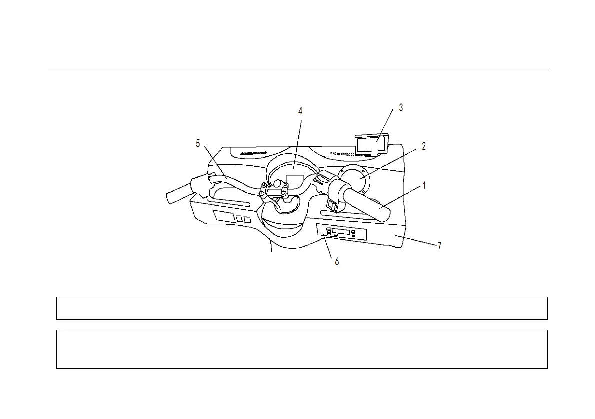 1 Throttle 2 Speaker 3 Reverse camera 4 Speedometer 5 Hand bar 6 Video 7 Dashboard