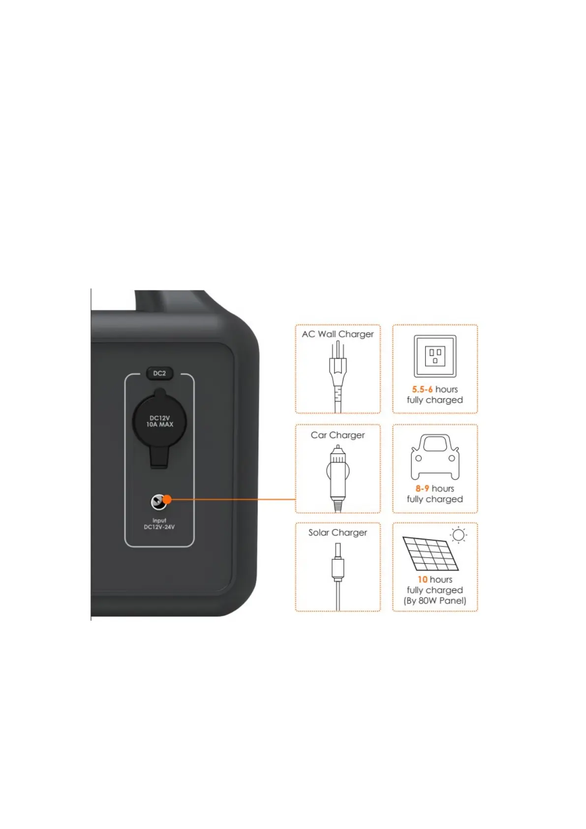 Please NOTE-Charging time depends on the solar panel's wattage and the sun's intensity.