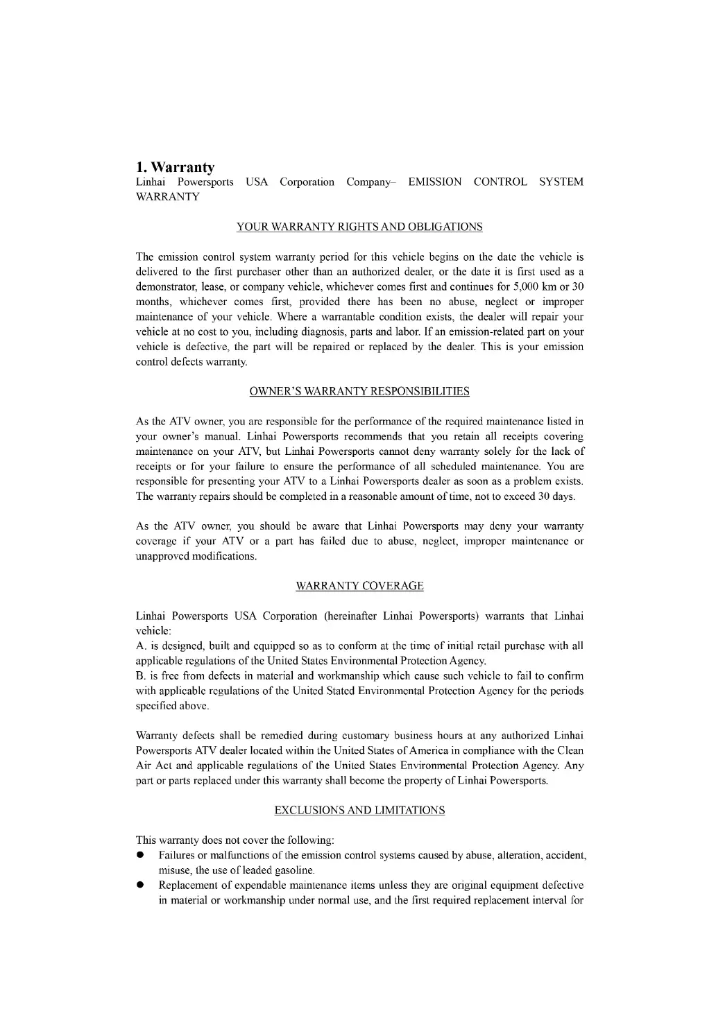 Massimo MSA 210 - 20. Emissions Control - System Warranty; Warranty Overview