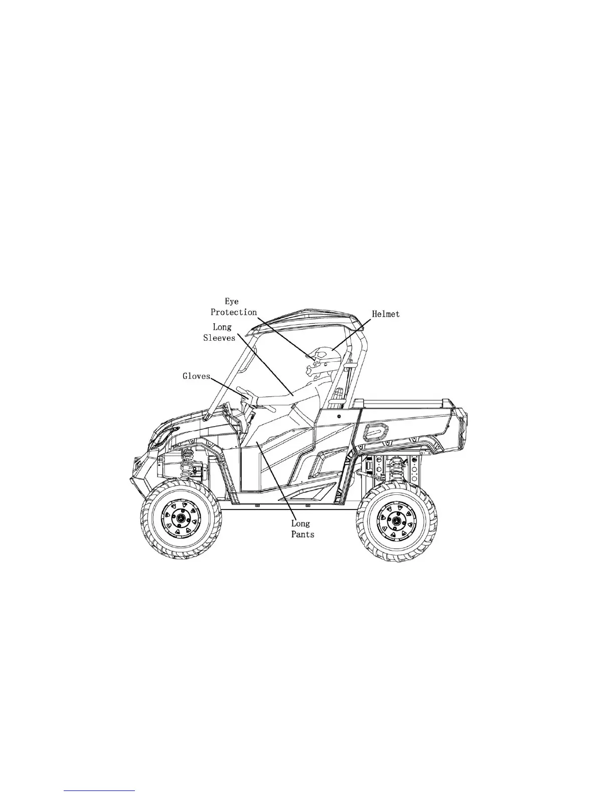 Always wear appropriate clothing when riding this vehicle. Wear protective clothing for comfort and