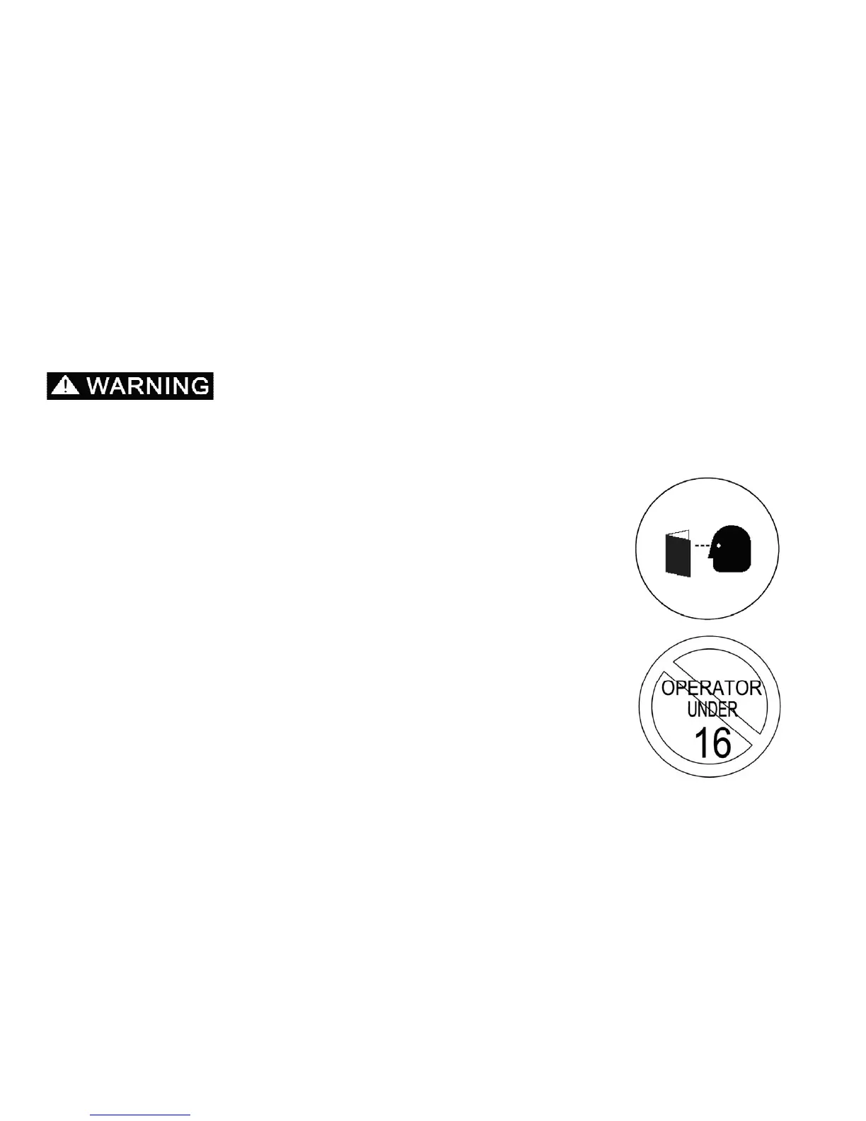 Operation is prohibited for anyone age 16 and under. Never
