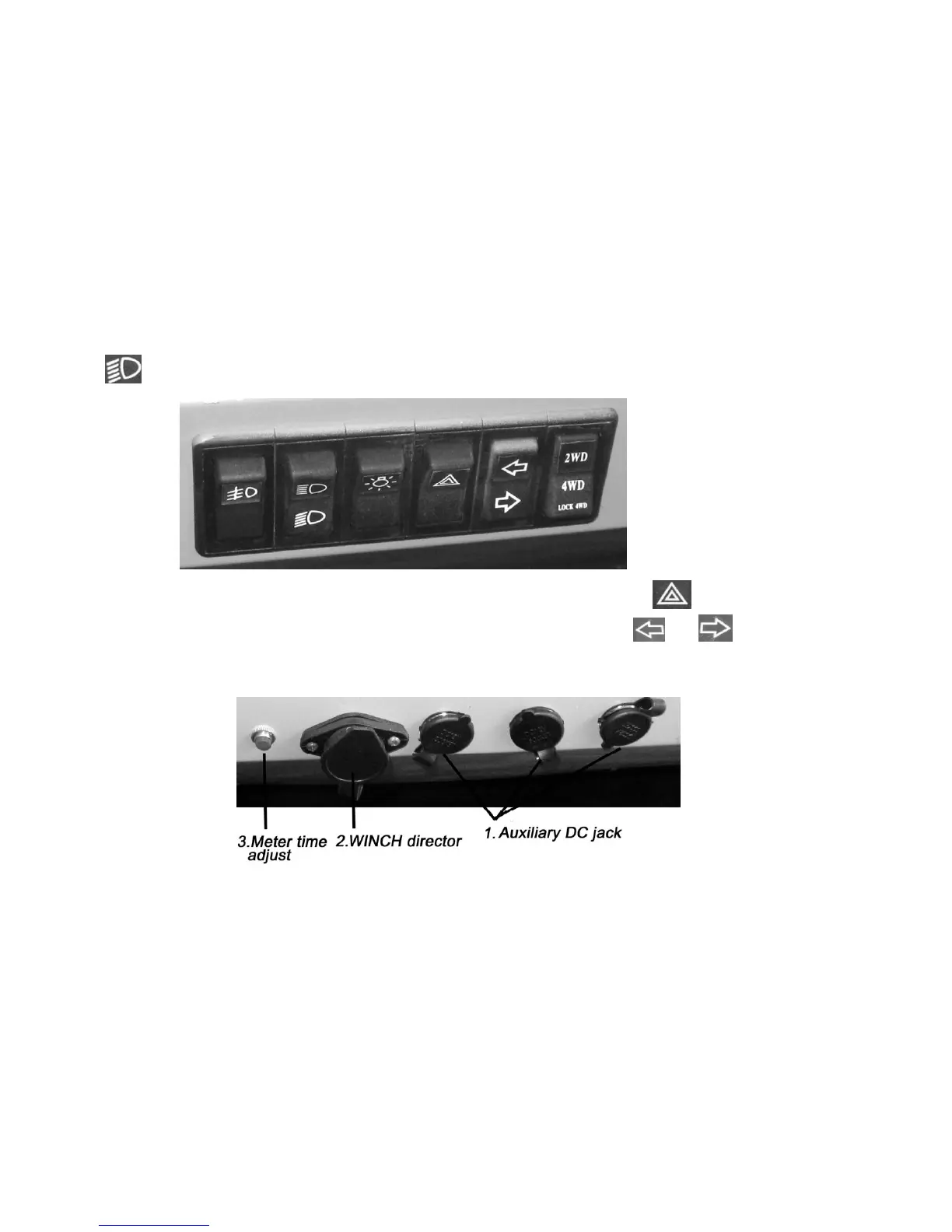 (c). When ignition switch is at “ON”, “ACC”or“ON”position, press down“ ”, alarm light blinks.