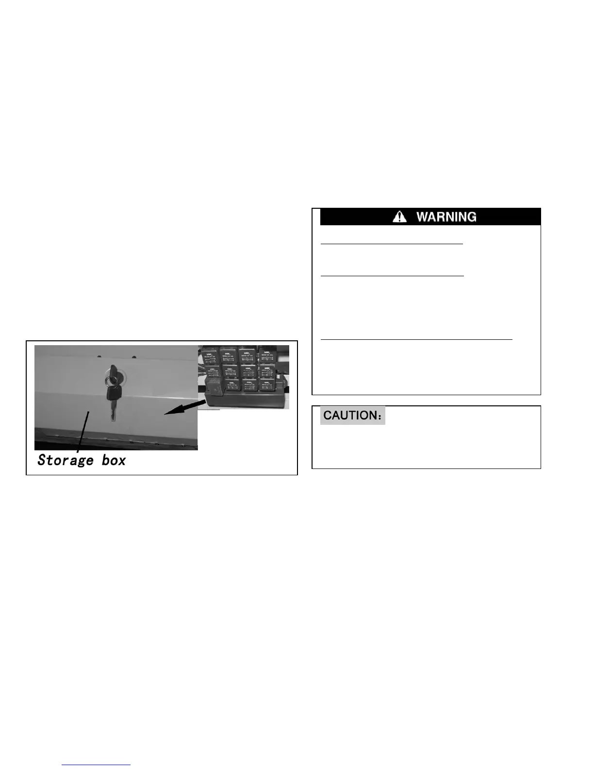1. The battery fuse are in the storage box.