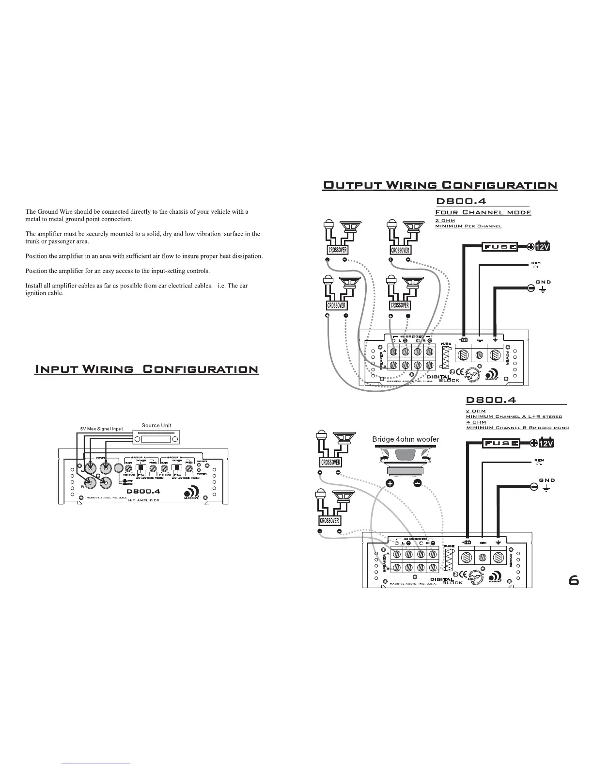 Massive Audio D800.4 - Wiring Configuration Details; Output Wiring Configuration; Input Wiring Configuration