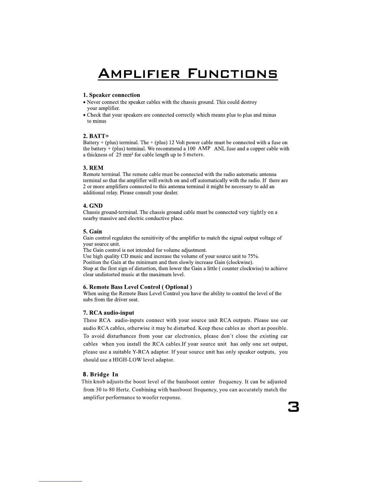 Massive Audio DB3000 - Amplifier Functions and Controls; Power and Ground Connections