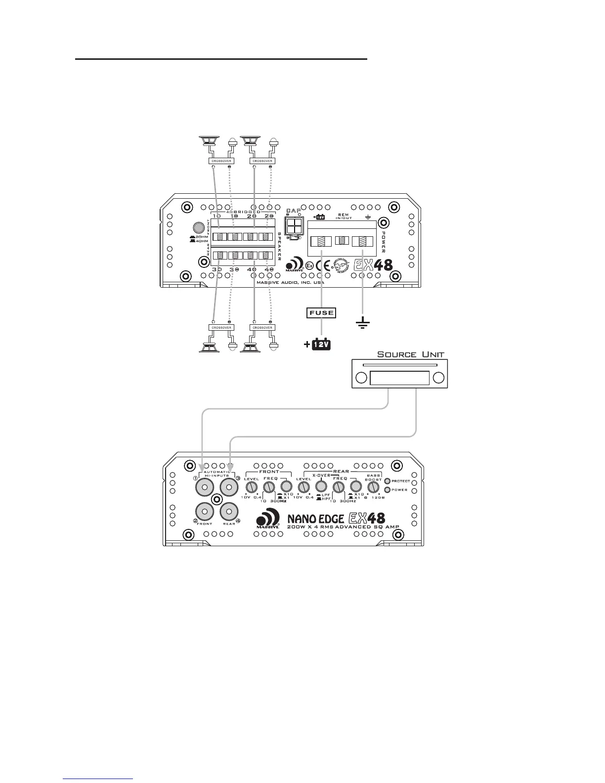 Massive Audio E2 - EX44;EX46;EX48 Amplifier Wiring (4-Channel Mode)