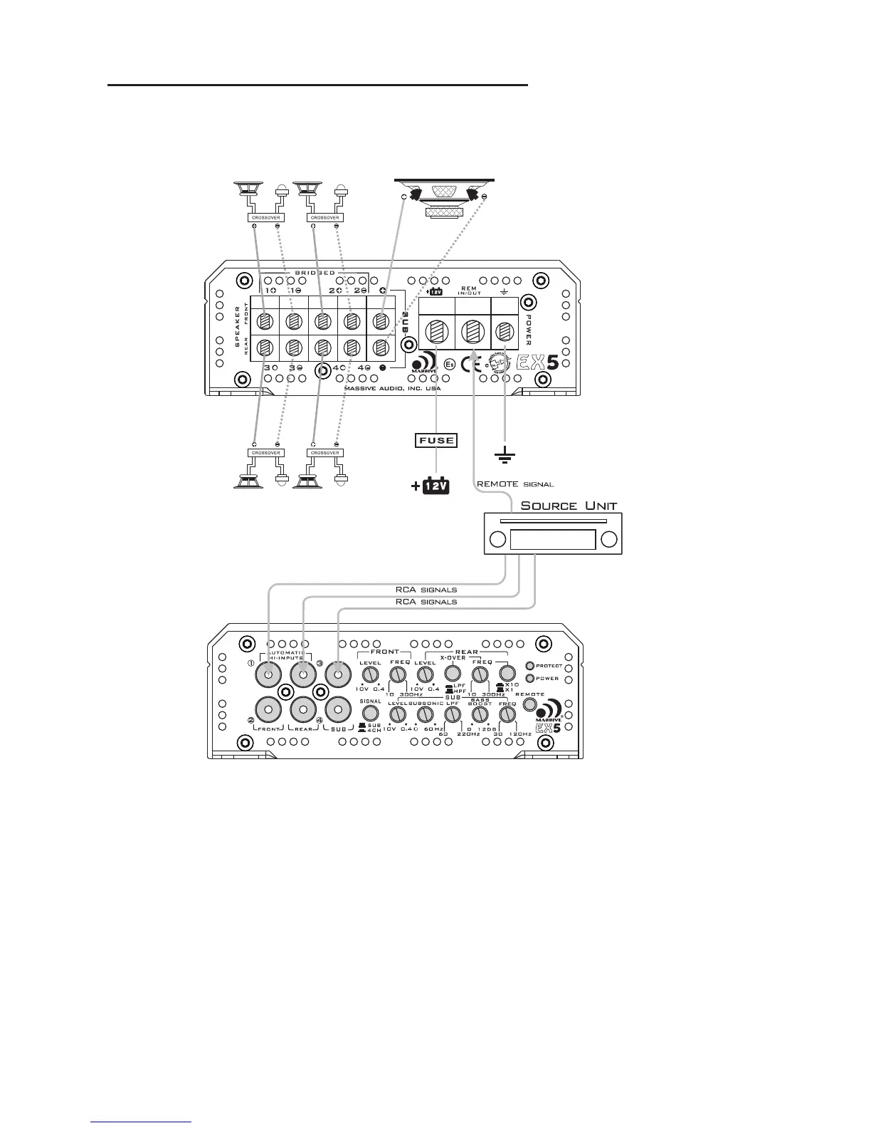 Massive Audio E2 - EX5 Amplifier Wiring (5-Channel Mode)