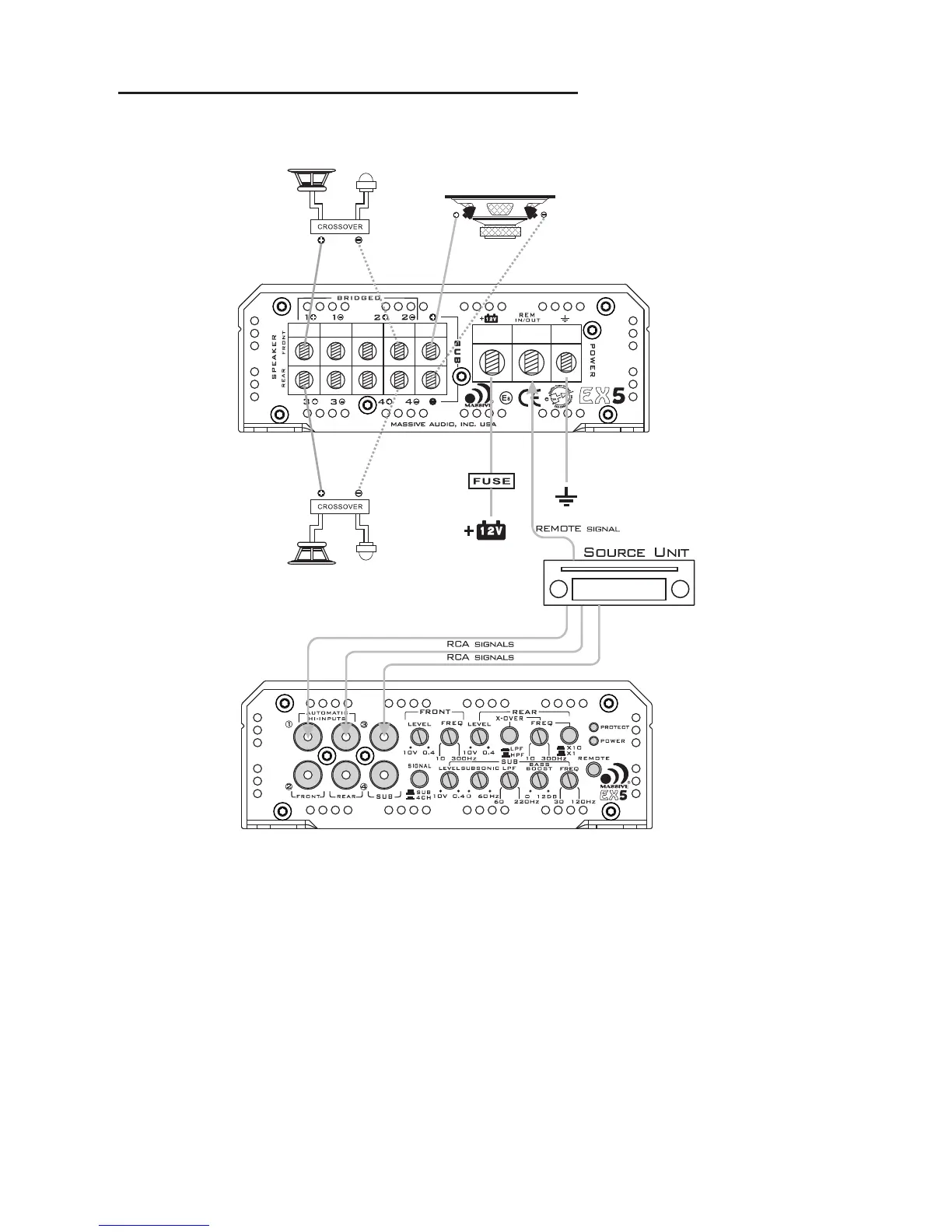 Massive Audio E2 - EX5 Amplifier Wiring (3-Channel Mode)