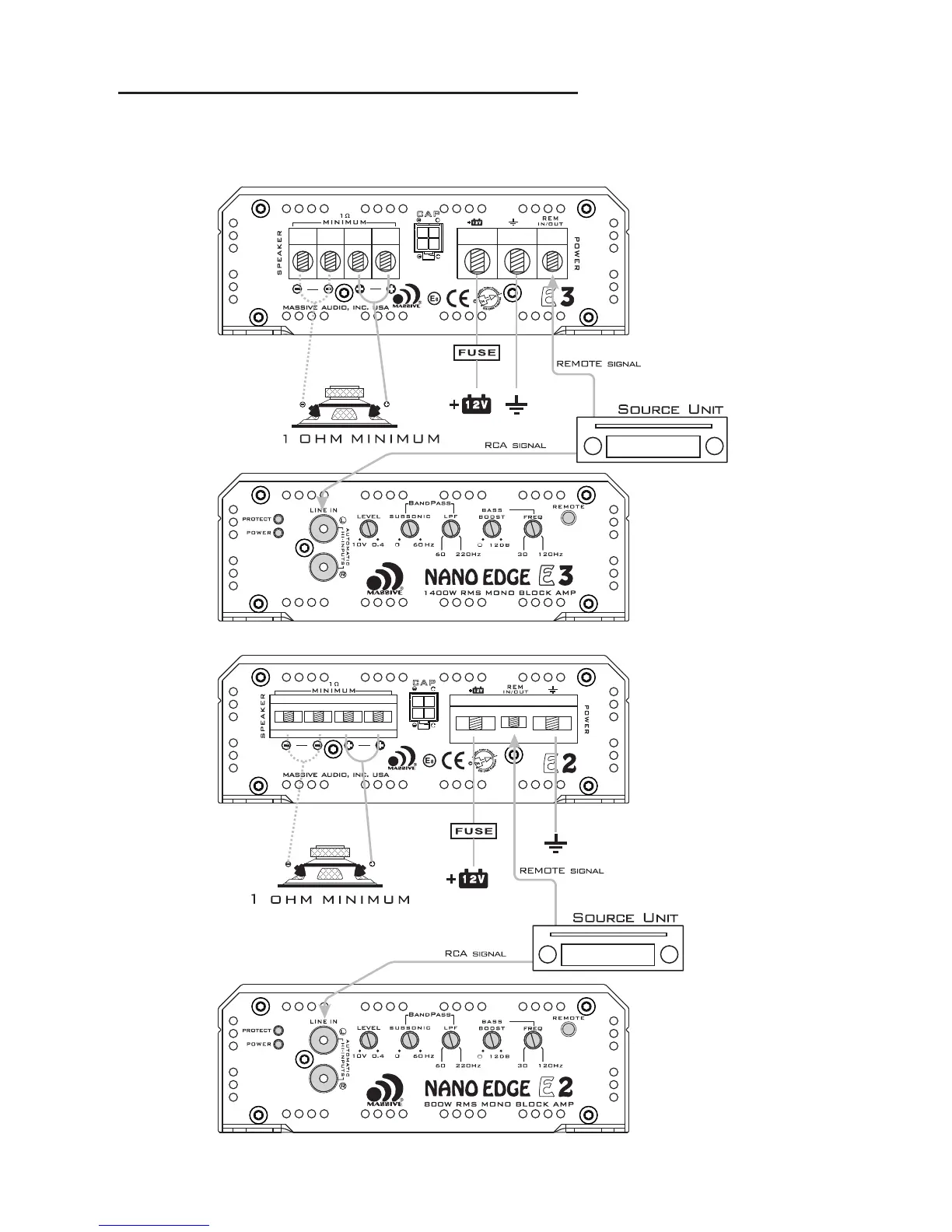 Massive Audio E2 - Amplifier Wiring Diagrams; Mono Amplifier Wiring (Single Woofer Load)