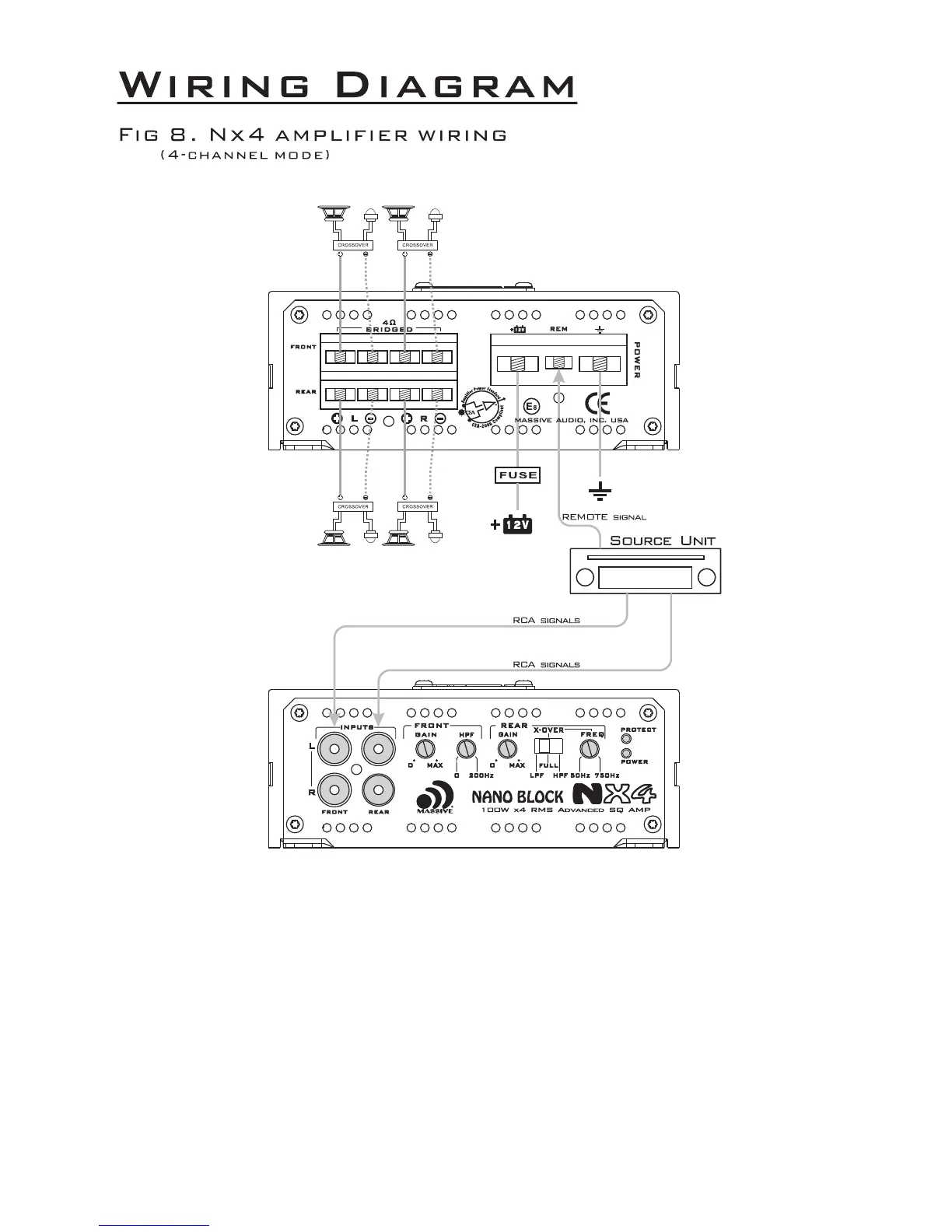 Massive Audio NX3 - NX4 Amplifier Wiring - 4-Channel Mode; NX4 Amplifier Wiring (4-Channel Mode)
