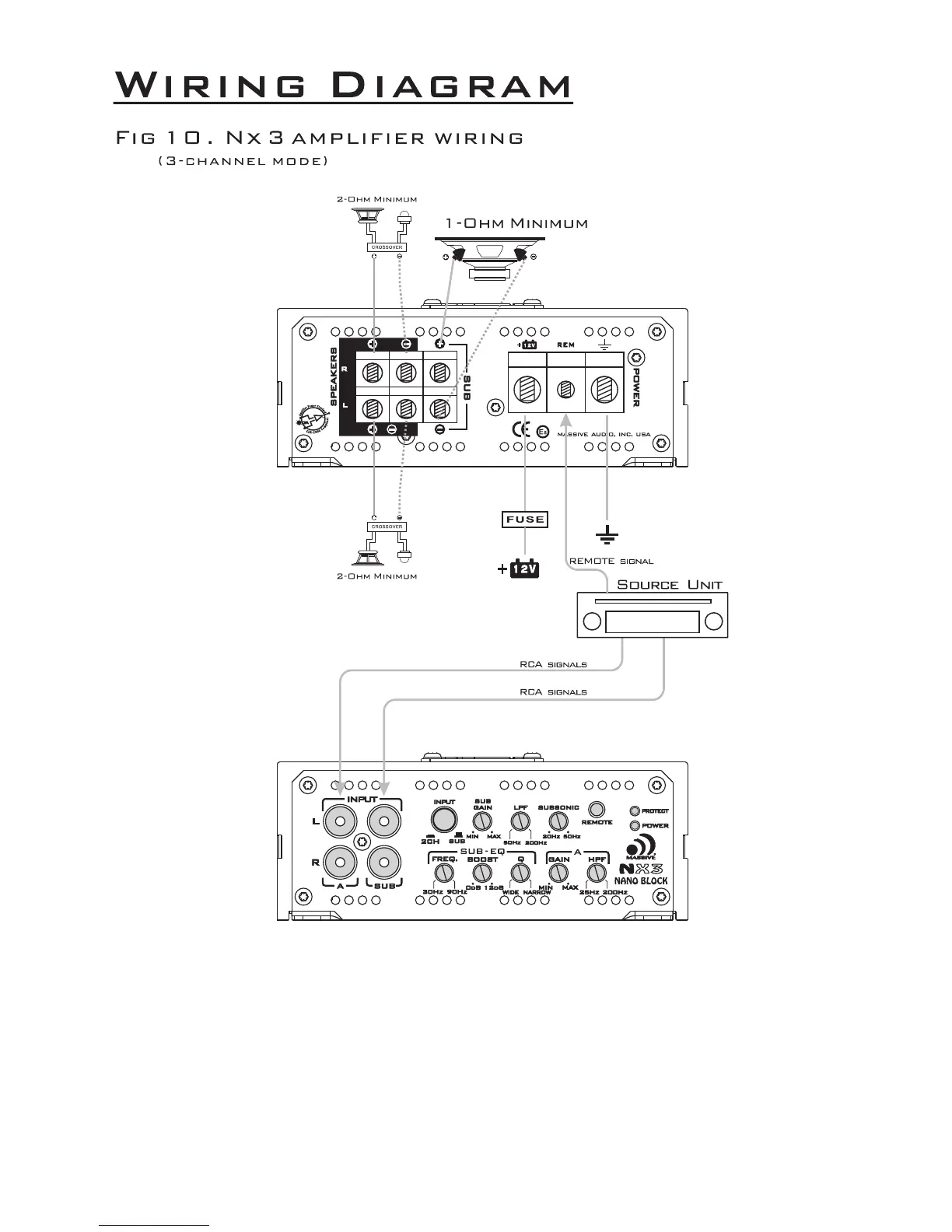 Massive Audio NX3 - NX3 Amplifier Wiring - 3-Channel Mode; NX3 Amplifier Wiring (3-Channel Mode)