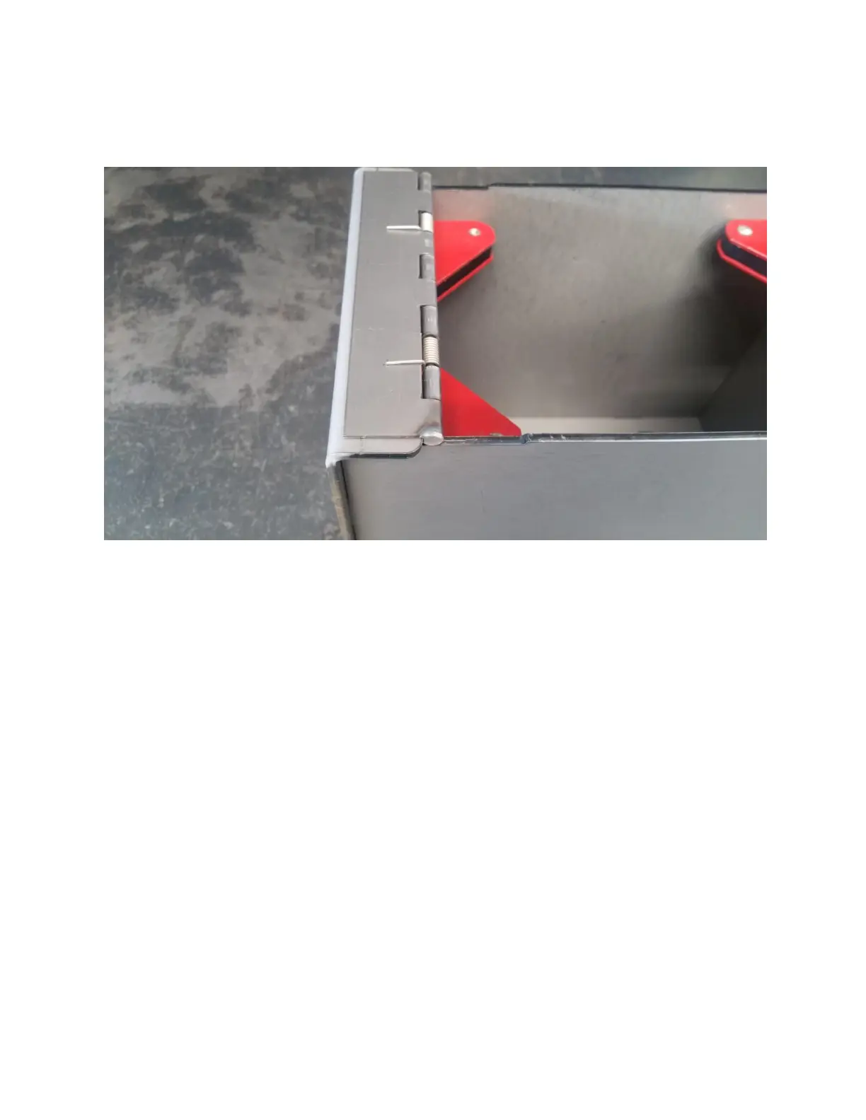 4. Slide the hinge into place in the relief cut, underneath the rear panel’s top flange, as pictured.