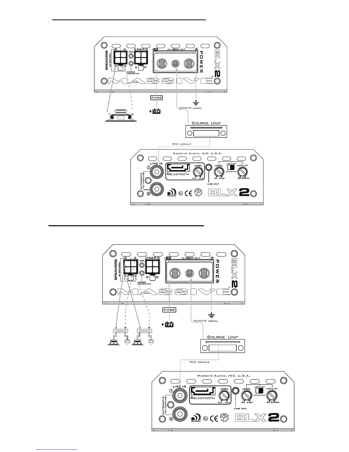 Massive BL1 - Massive Nano Blu Amplifier Wiring Diagrams; BLX2 Amplifier Wiring (1-Channel); BLX2 Amplifier Wiring (2-Channel)