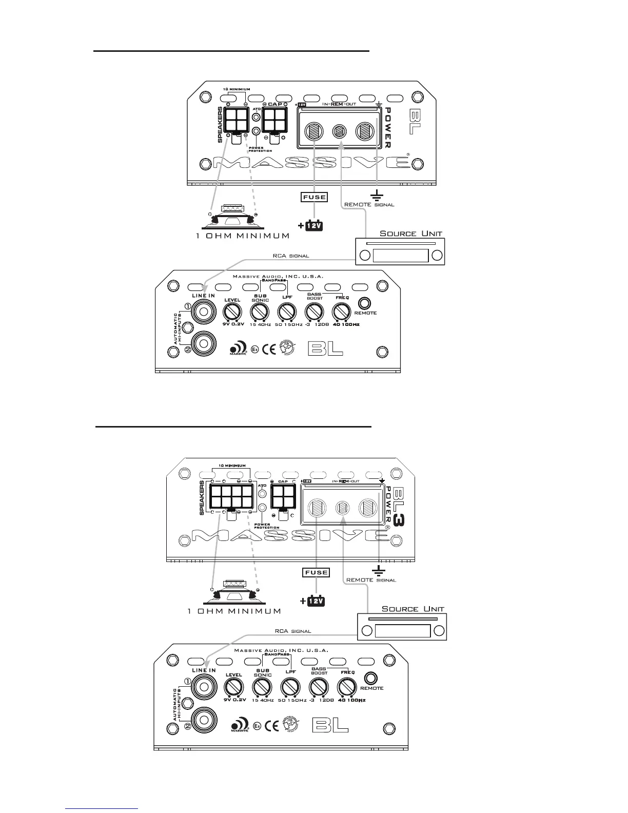 Massive BLX4 - BL1 Amplifier Wiring (1-Channel Mode); BL3 Amplifier Wiring (1-Channel Mode)