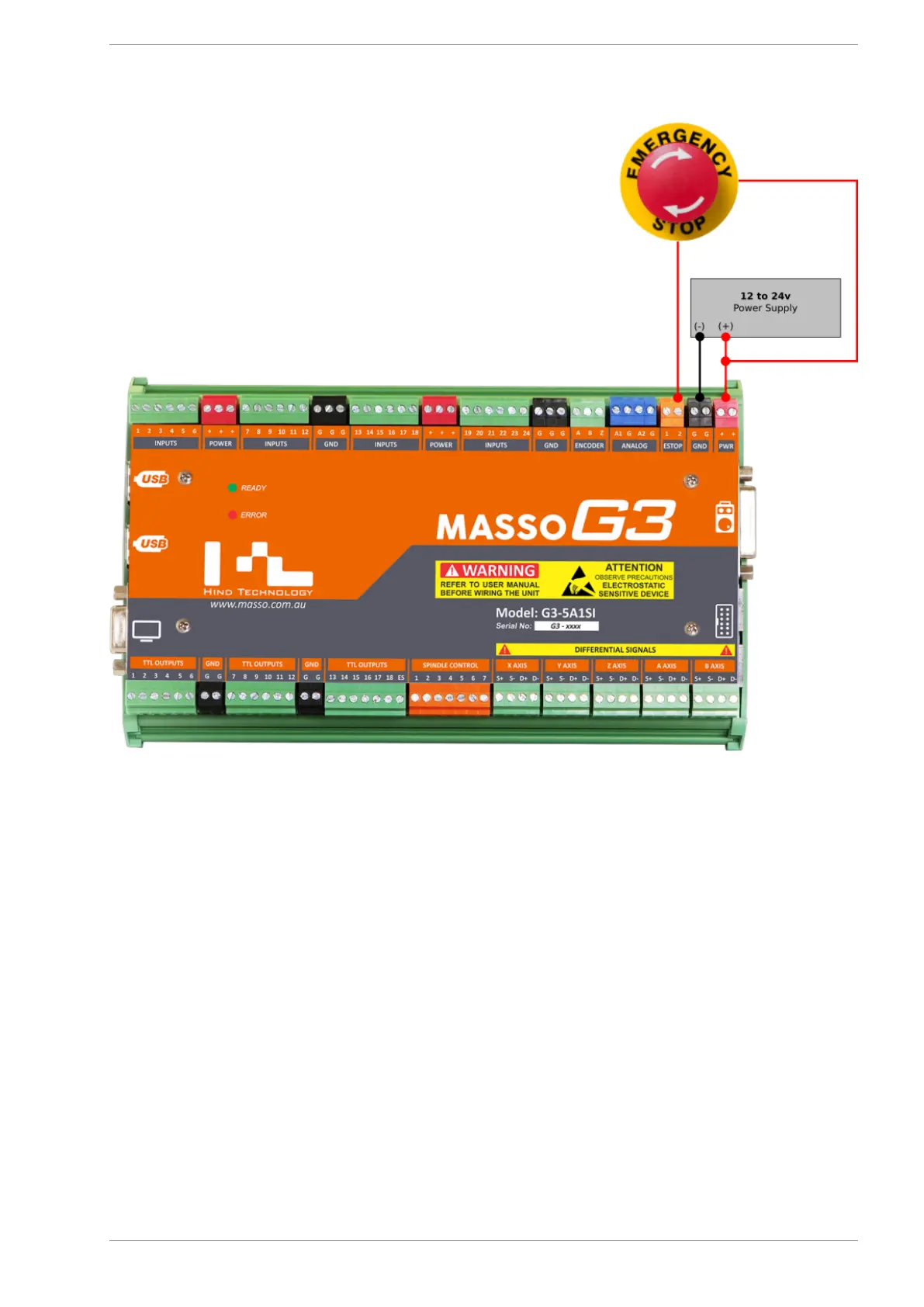 the ESTOP terminal is wired to positive of the power supply to get the MPG E-Stop button working.