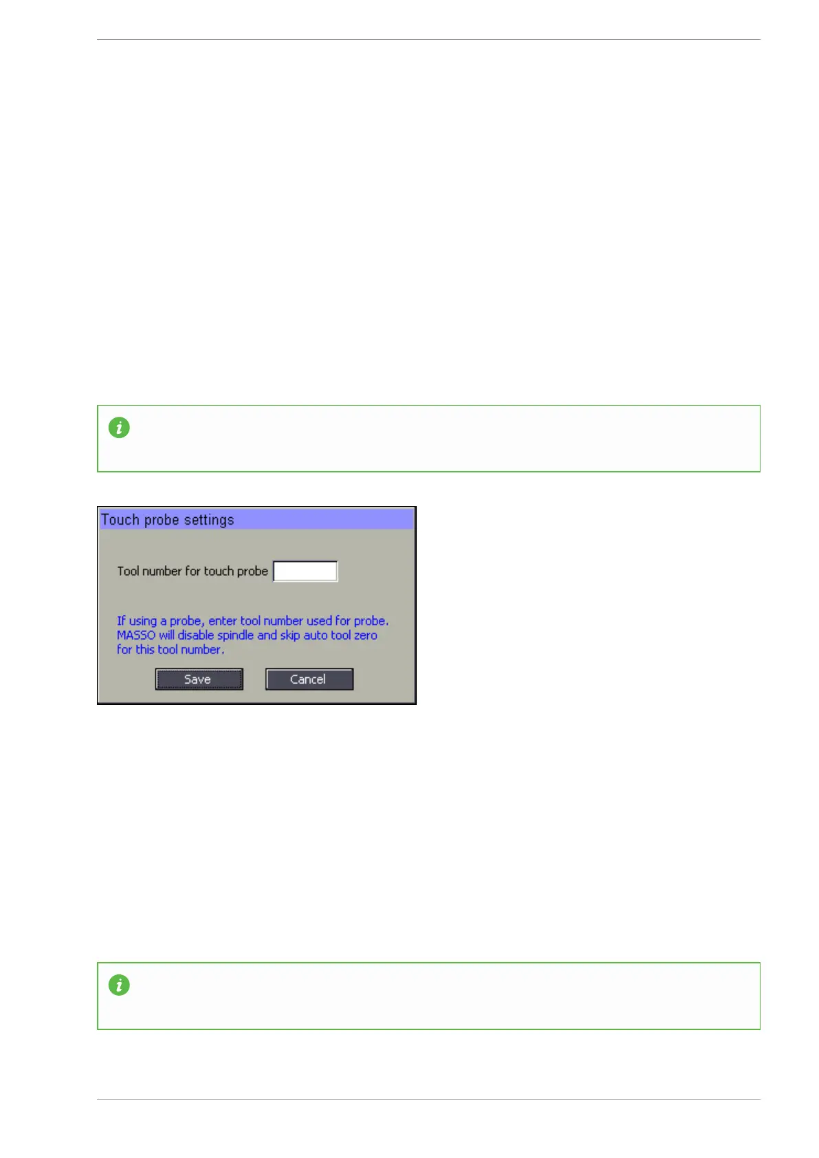 zero which can damage the touch probe. If a tool number is entered in the above settings then MASSO will