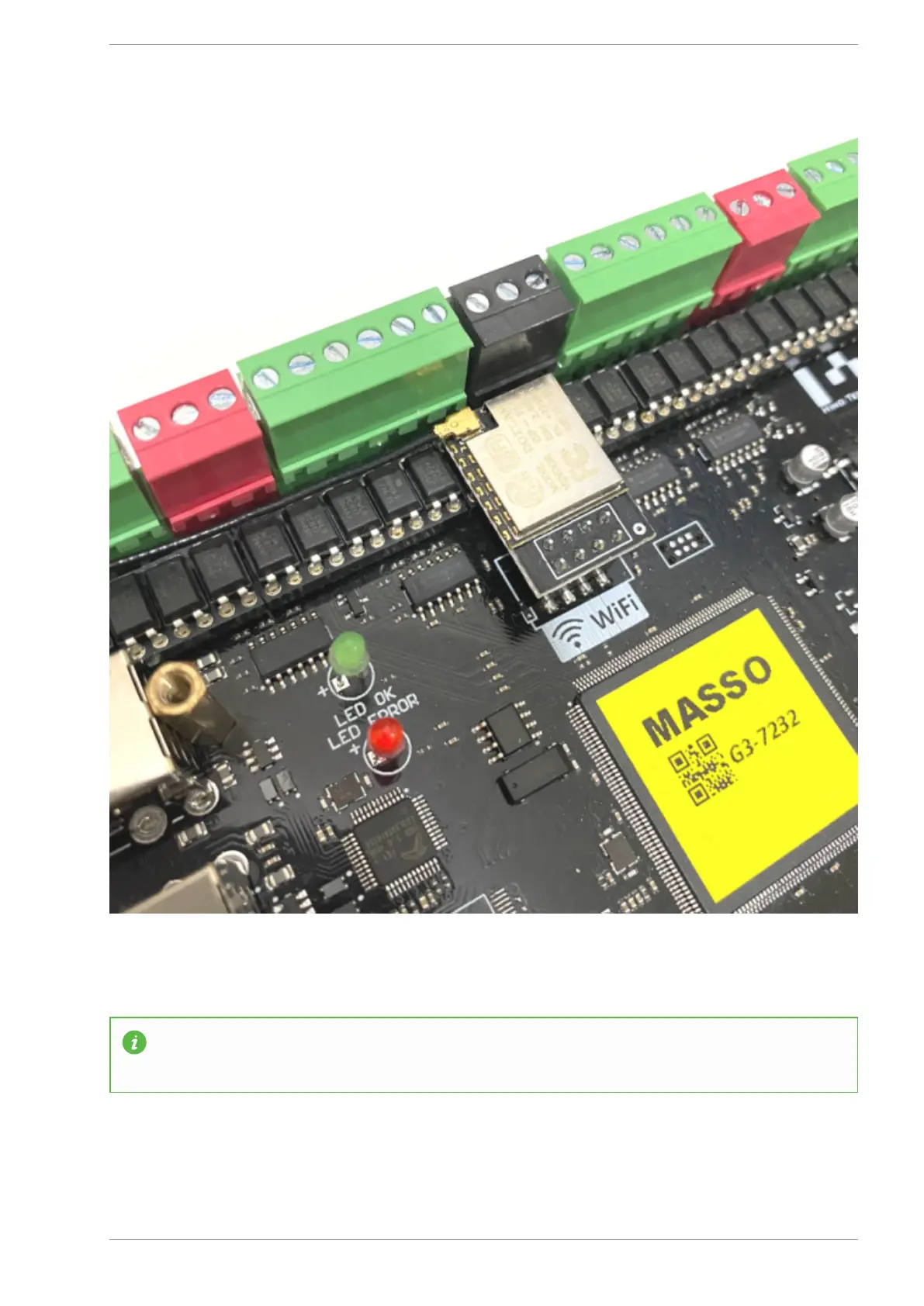 INFORMATION: MASSO Wi-Fi module supports 2.4GHz frequency (IEEE 802.11 b/g/n).