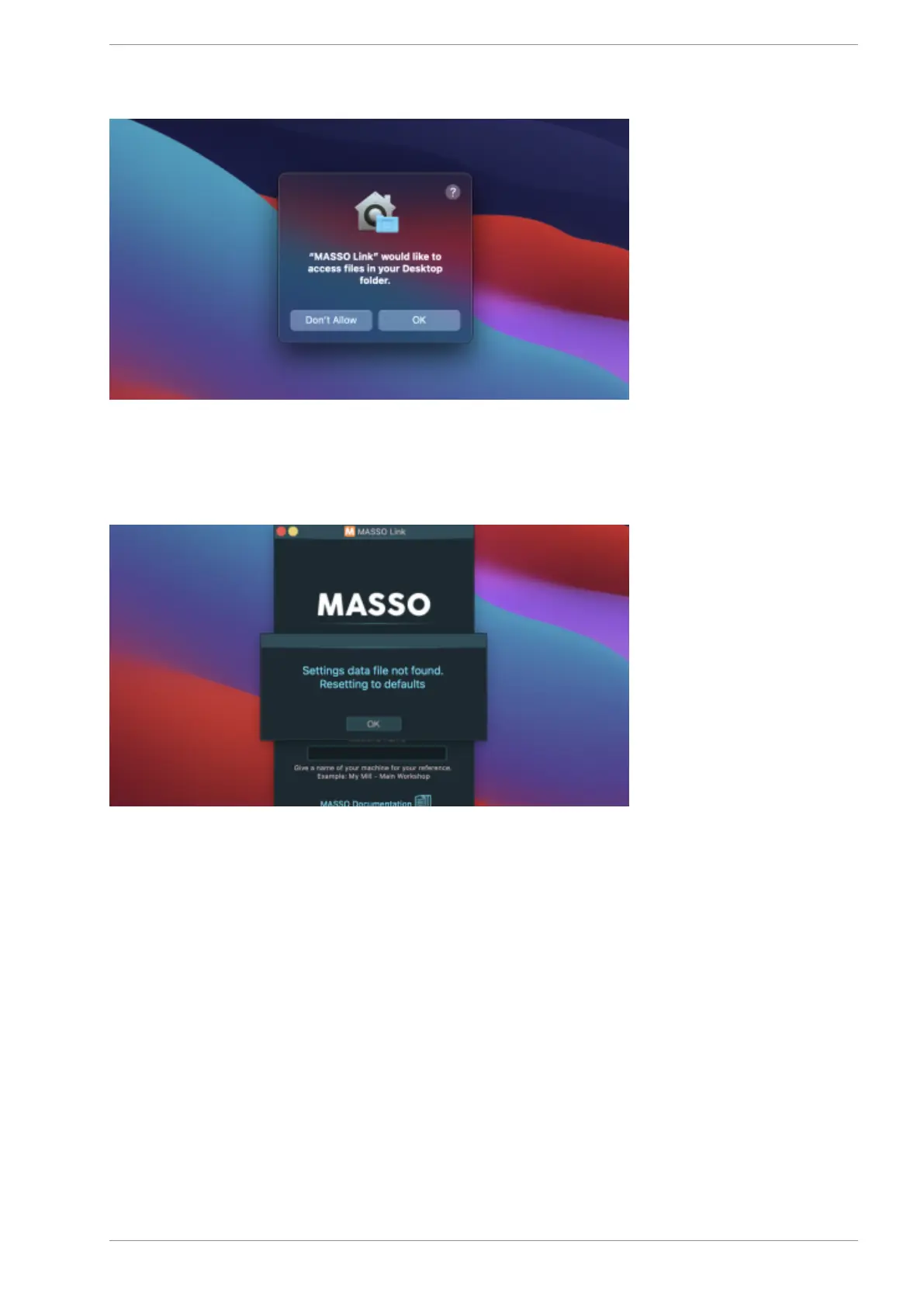 Double click the MASSO Link icon, on first use you will see the above message, click the OK button.