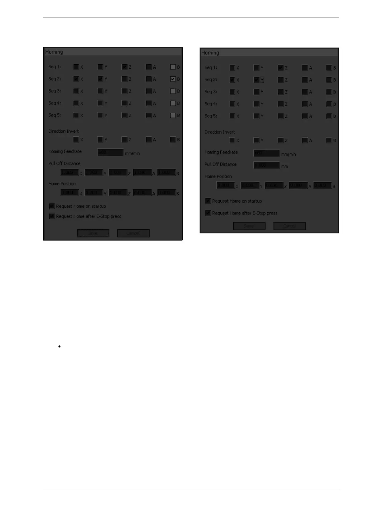 In the Examples below the X axis homing direction has been inverted.