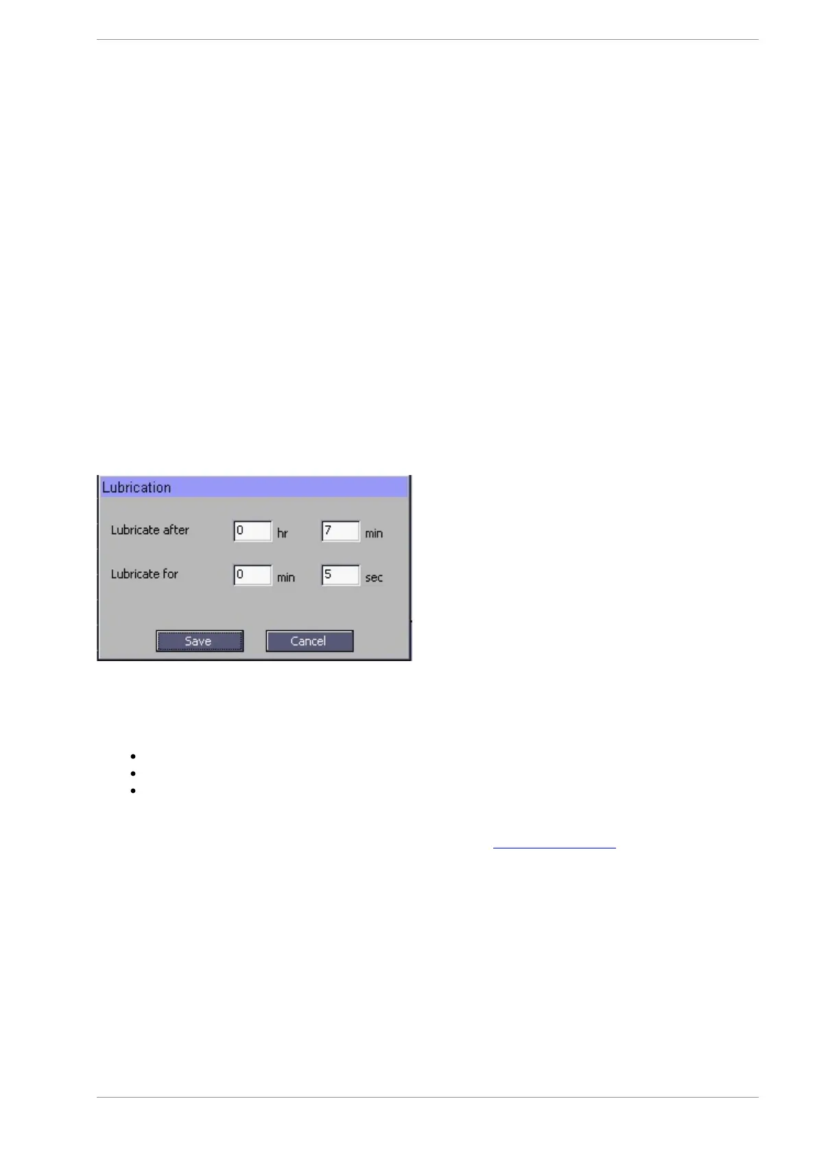 The lubrication output can be assigned to any of the TTL outputs in the F1 screen.