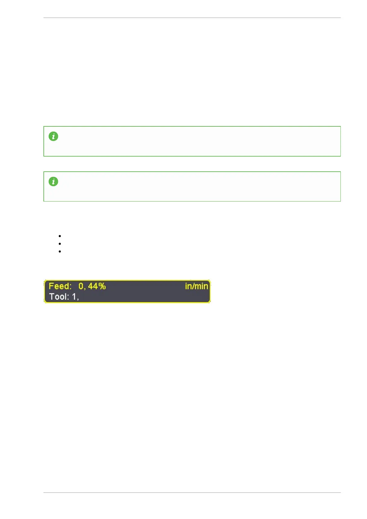 Information: Feed rate override ranges from 20% to 100% of the specified Feed rate. Feed rate