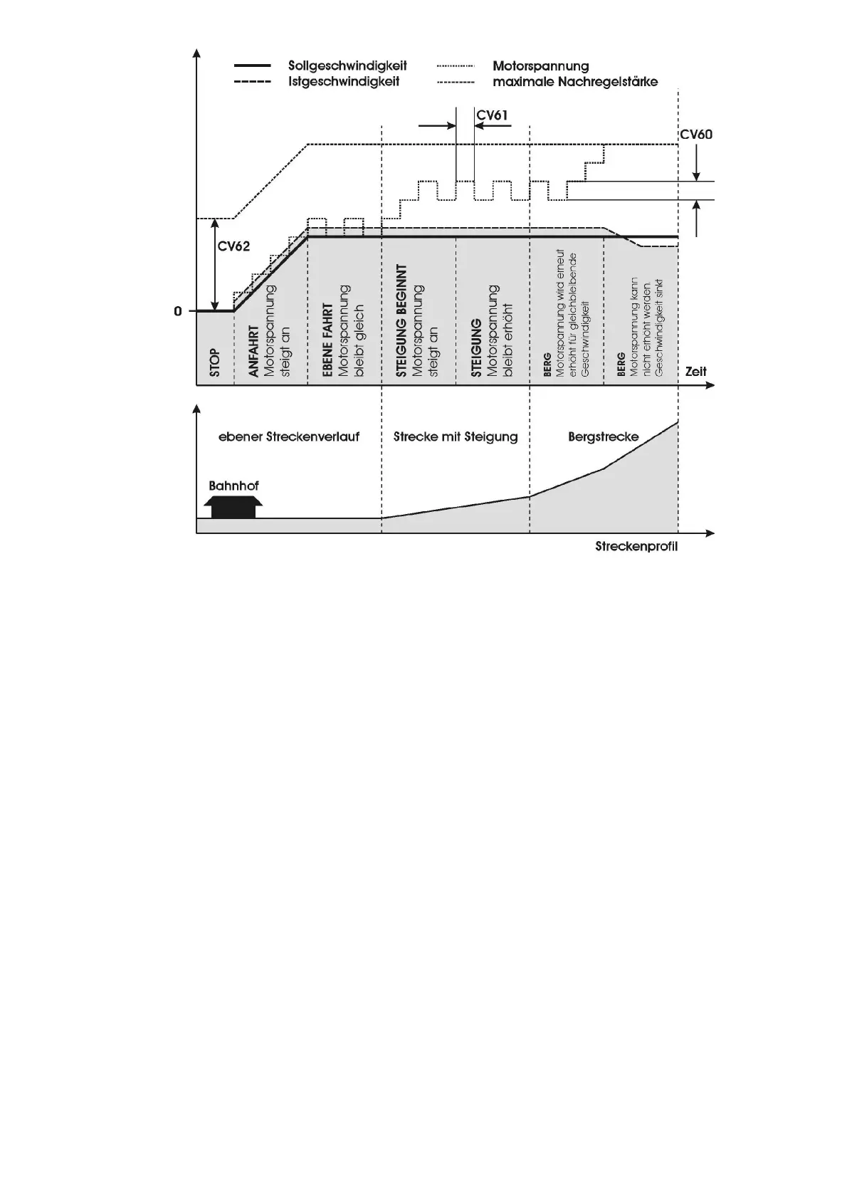 Geschwindigkeit der Lok beizuhalten. Die Lastregelung greift nun ein und regelt die Motorspannung