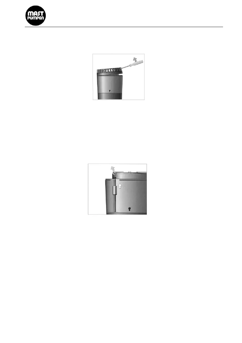 Hence, unmount the floater from the holder at the pump case by pulling it off in a vertical position with the