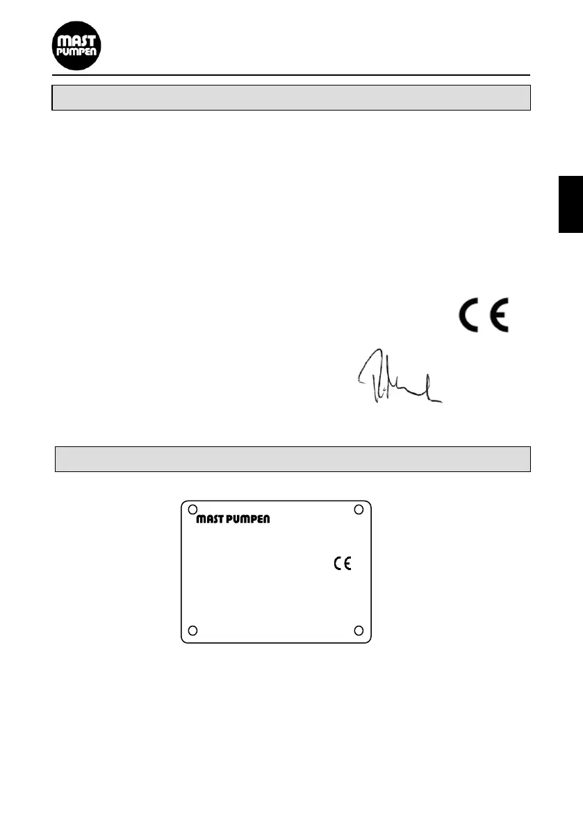 Die Firma MAST PUMPEN GmbH erklärt in alleiniger Verantwortung, dass die