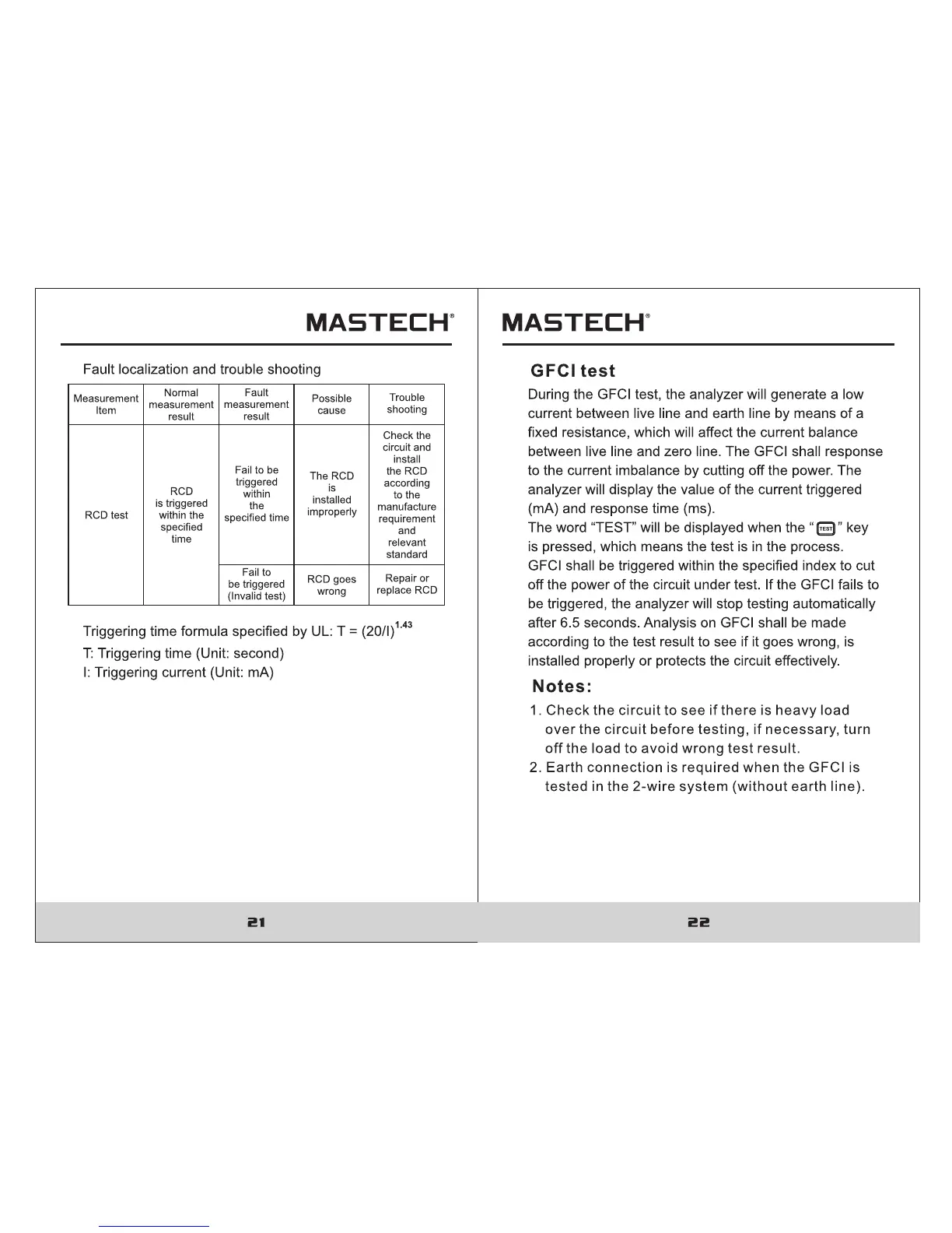 Mastech MS5908C - Troubleshooting RCD Test Results; GFCI Test Procedure