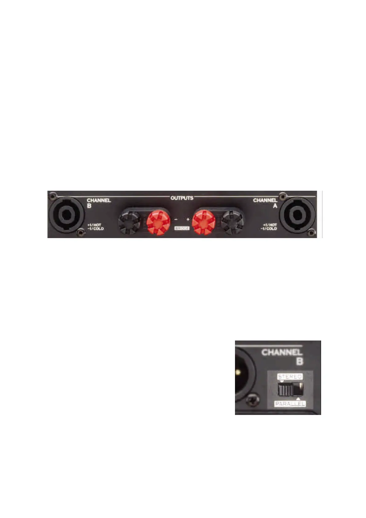 el derecho, provistas de un conector Speakon, o un par de Bornes para cada una.